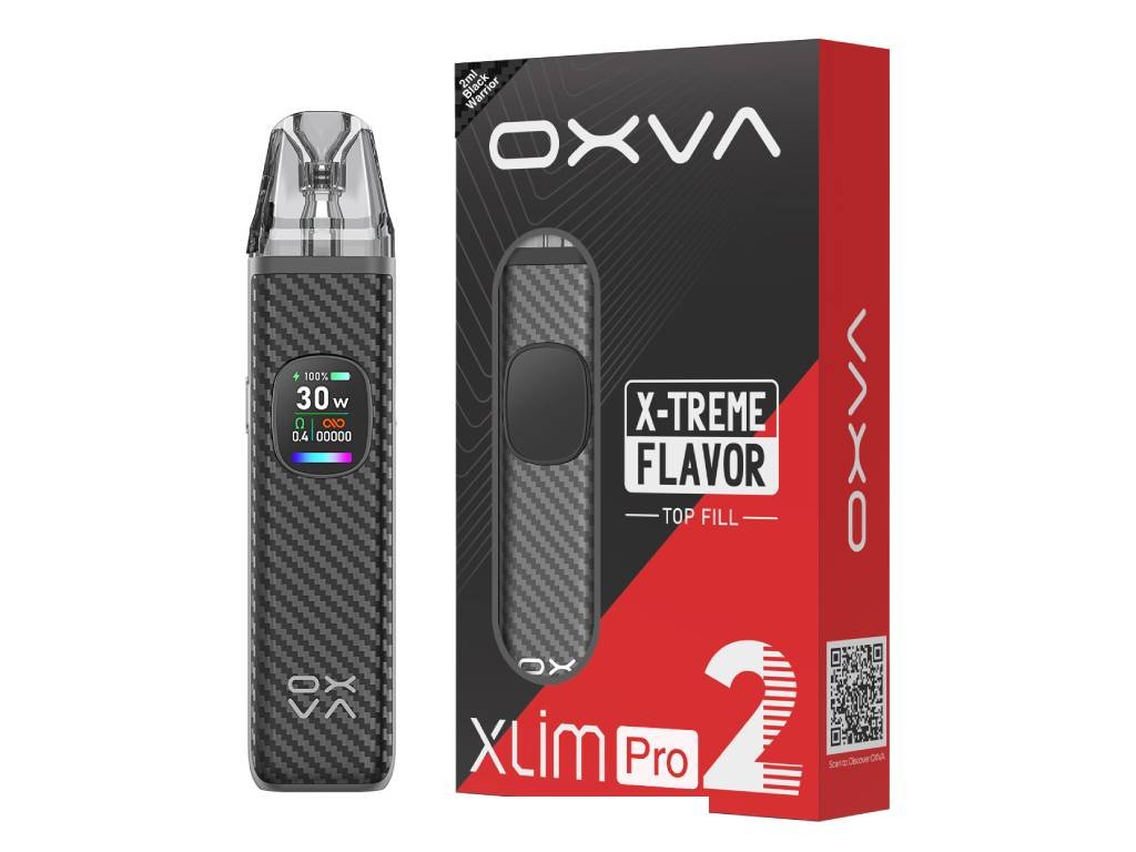 OXVA XLIM Pro 2 - Black Carbon je stylové a výkonné zařízení, které přináší vylepšenou konstrukci a vyšší komfort při používání. Prémiové kovové tělo doplňuje přehledný barevný displej a intuitivní ovládání. Cartridge s objemem 2 ml je kompatibilní s hlavami XLIM V2 a V3, což umožňuje uživatelům volbu mezi různými styly potahu – MTL i RDL. Rychlé nabíjení přes USB-C a výdrž baterie 1300 mAh zajišťují spolehlivý provoz po celý den.